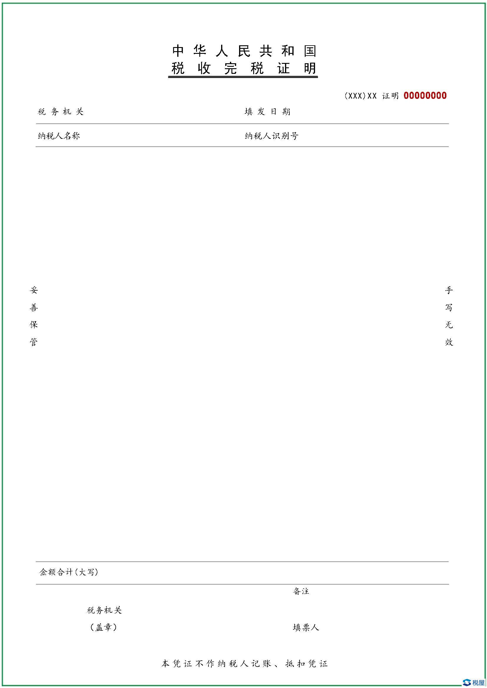 一、自2019年1月1日起,《稅收完稅證明》不再作為稅收票證管理,不再套印“國家稅務總局稅收票證監制章”,加蓋的稅務機關印章由“征稅專用章”調整為“業務專用章”。具體式樣見附件。
